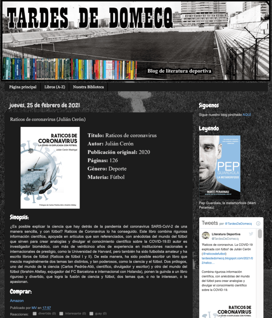 Sección de Libros de Diego Barcala en Tablero Deportivo (Radio Nacional de España) 3/10/2020